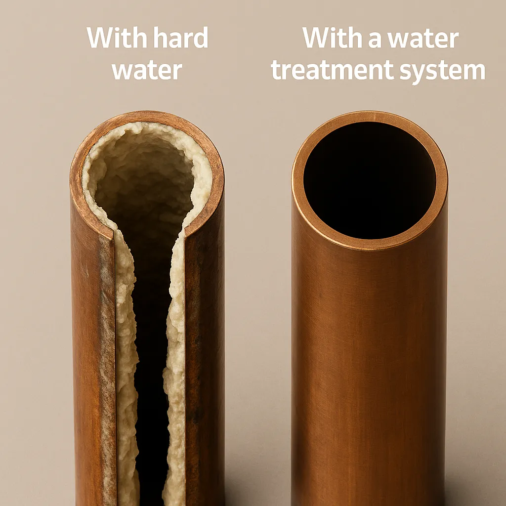 The moment hard water flows, calcium and magnesium begin sticking to your pipes.
